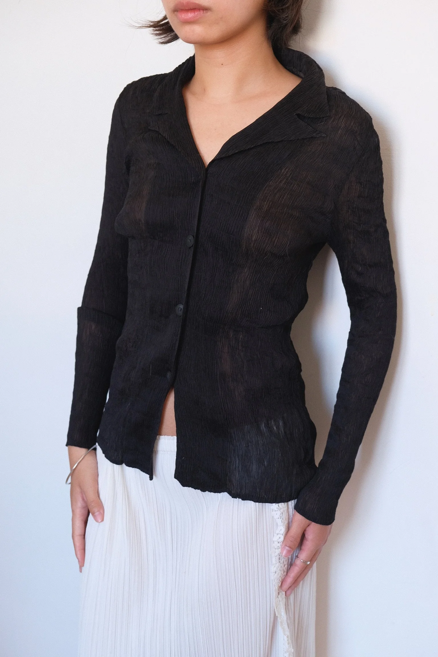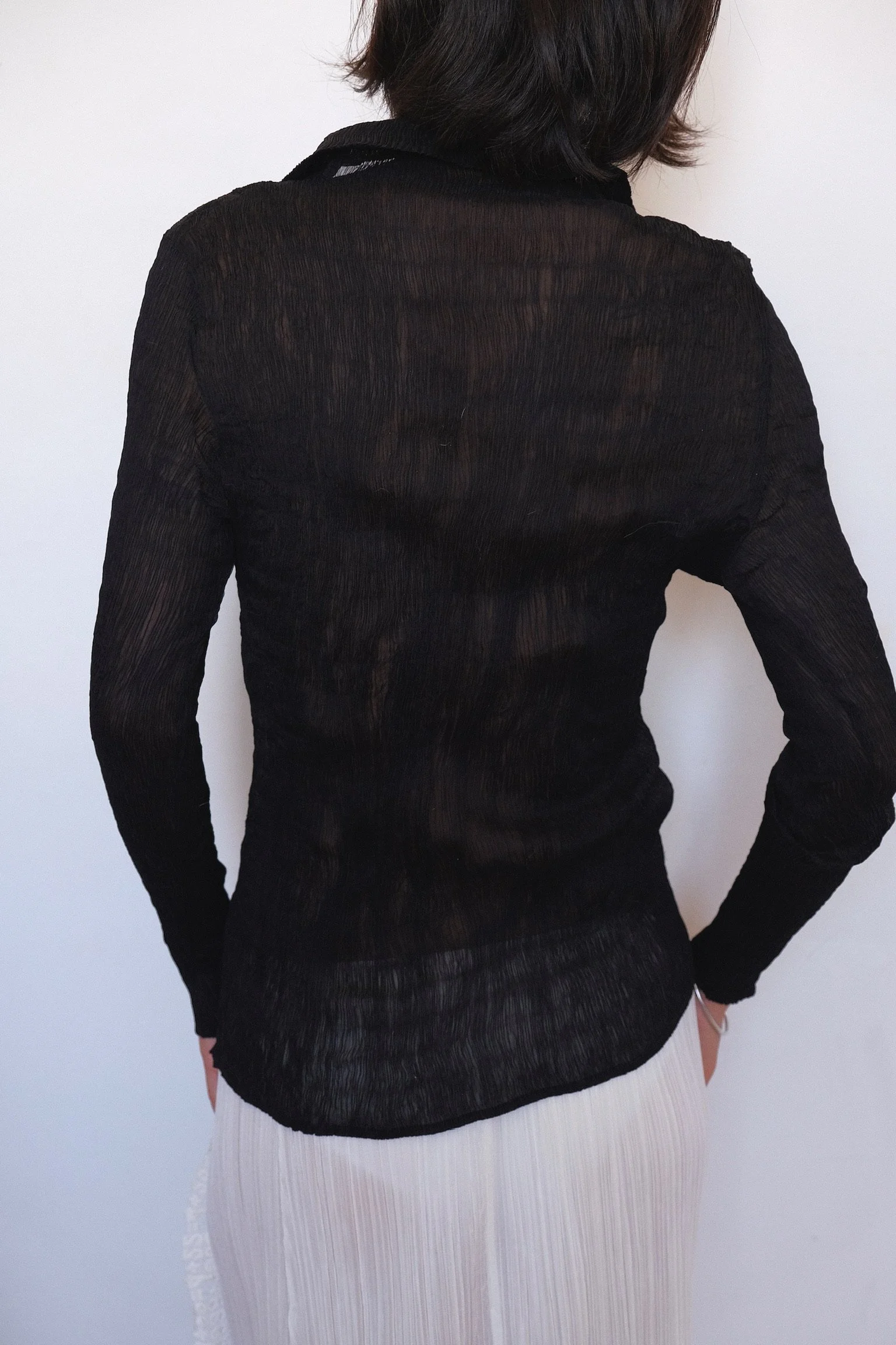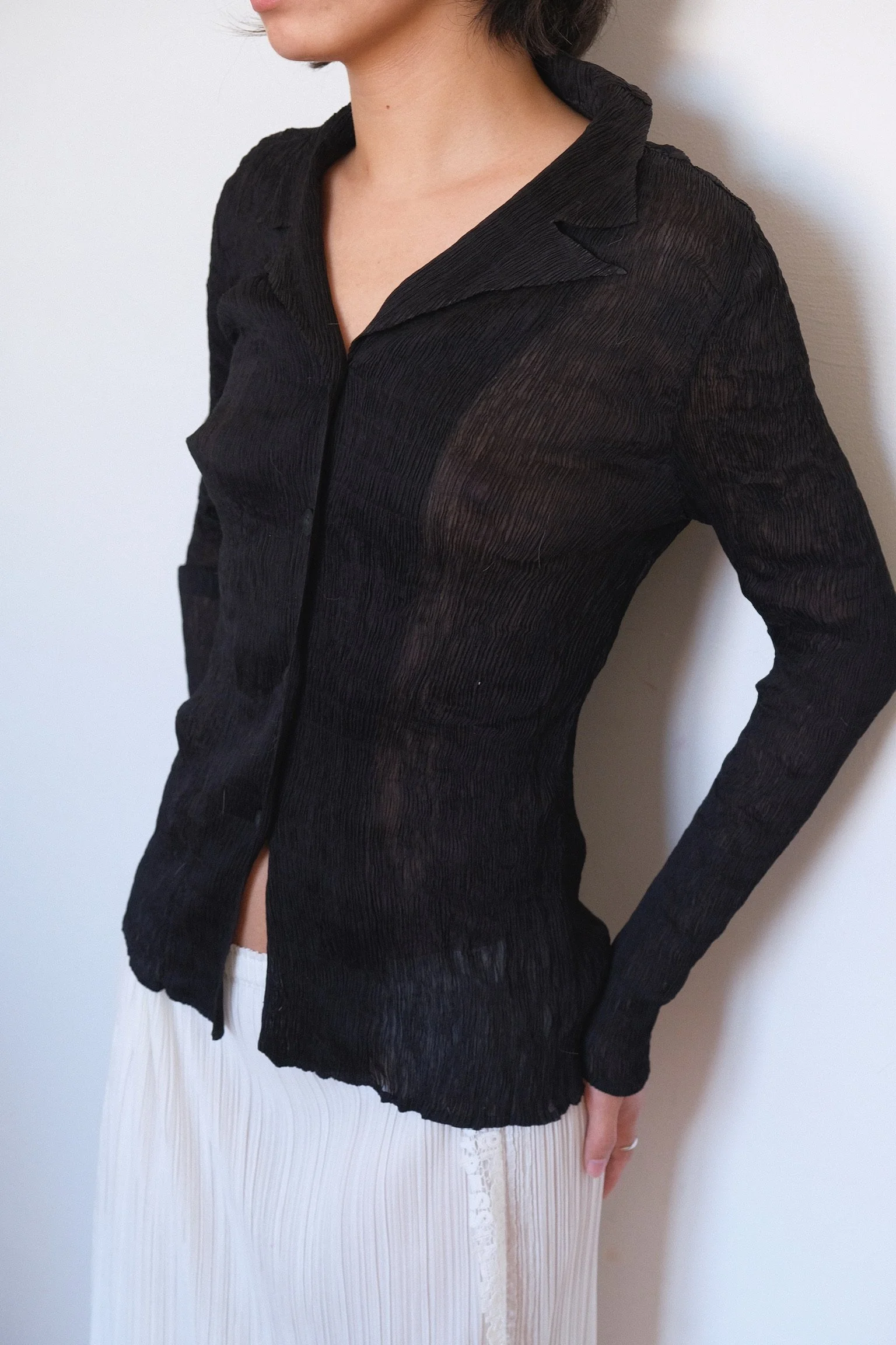 Shop › Black Fine Pleats Sheer Blazer Top Image 1 of 5 Image 2 of 5 Image 3 of 5 Image 4 of 5 Image 5 of 5 Black Fine Pleats Sheer Blazer Top €65.00 sold out Color: BlackIn very good condition.Fits XS/S/(a small) M Sold Out Added! Color: BlackIn very good condition.Fits XS/S/(a small) M