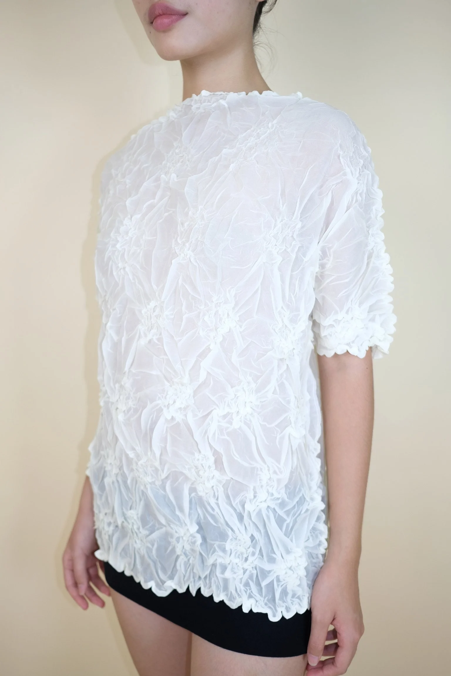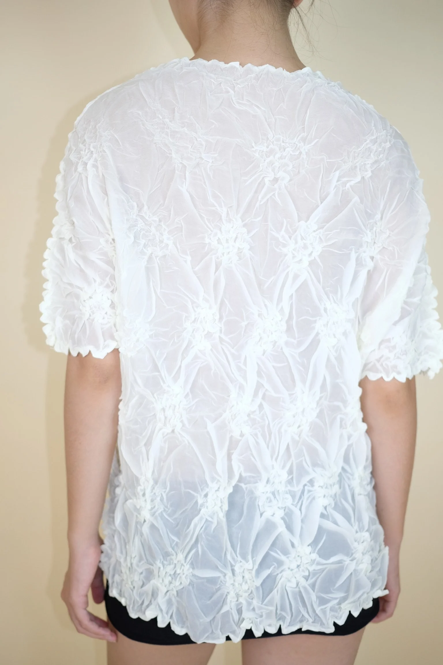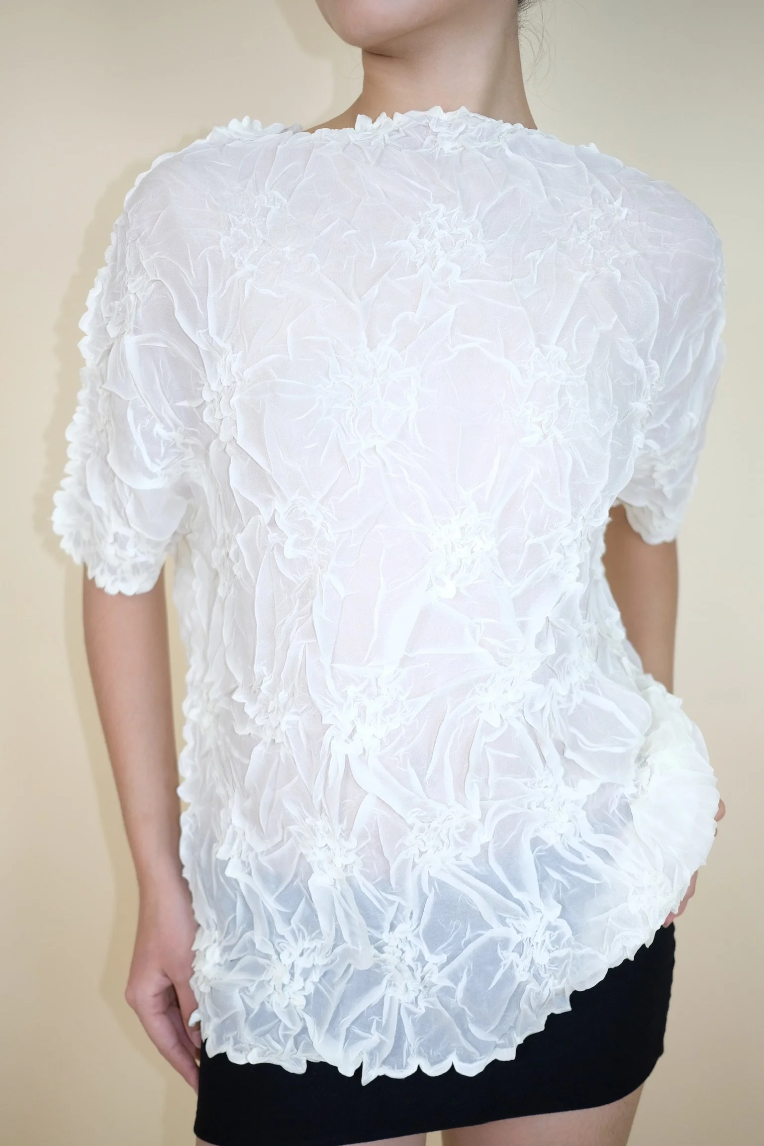 Shop › White Popcorn Texture Top Image 1 of 5 Image 2 of 5 Image 3 of 5 Image 4 of 5 Image 5 of 5 White Popcorn Texture Top €55.00 sold out Color: WhiteIn very good condition.Fits S/M Sold Out Added! Color: WhiteIn very good condition.Fits S/M