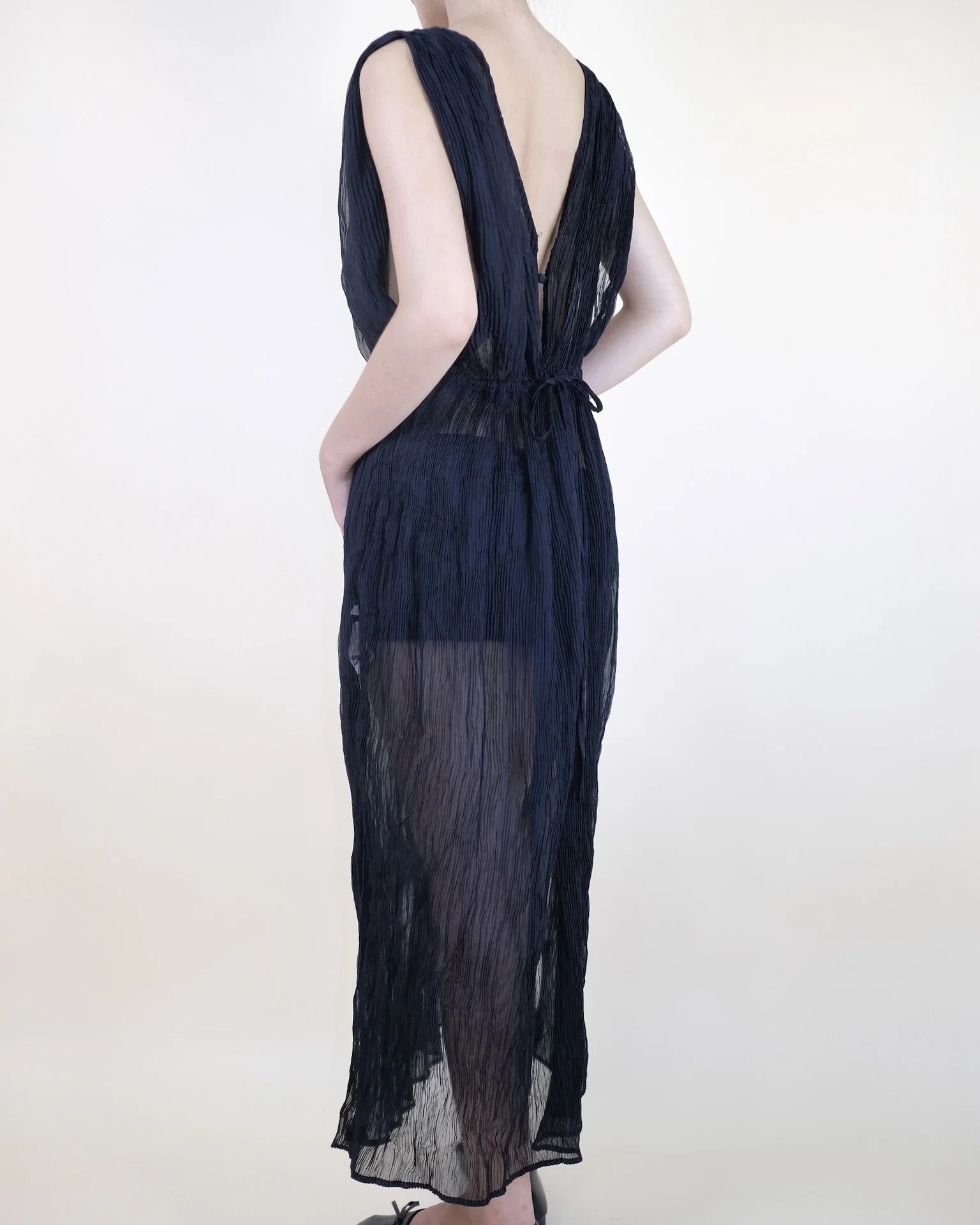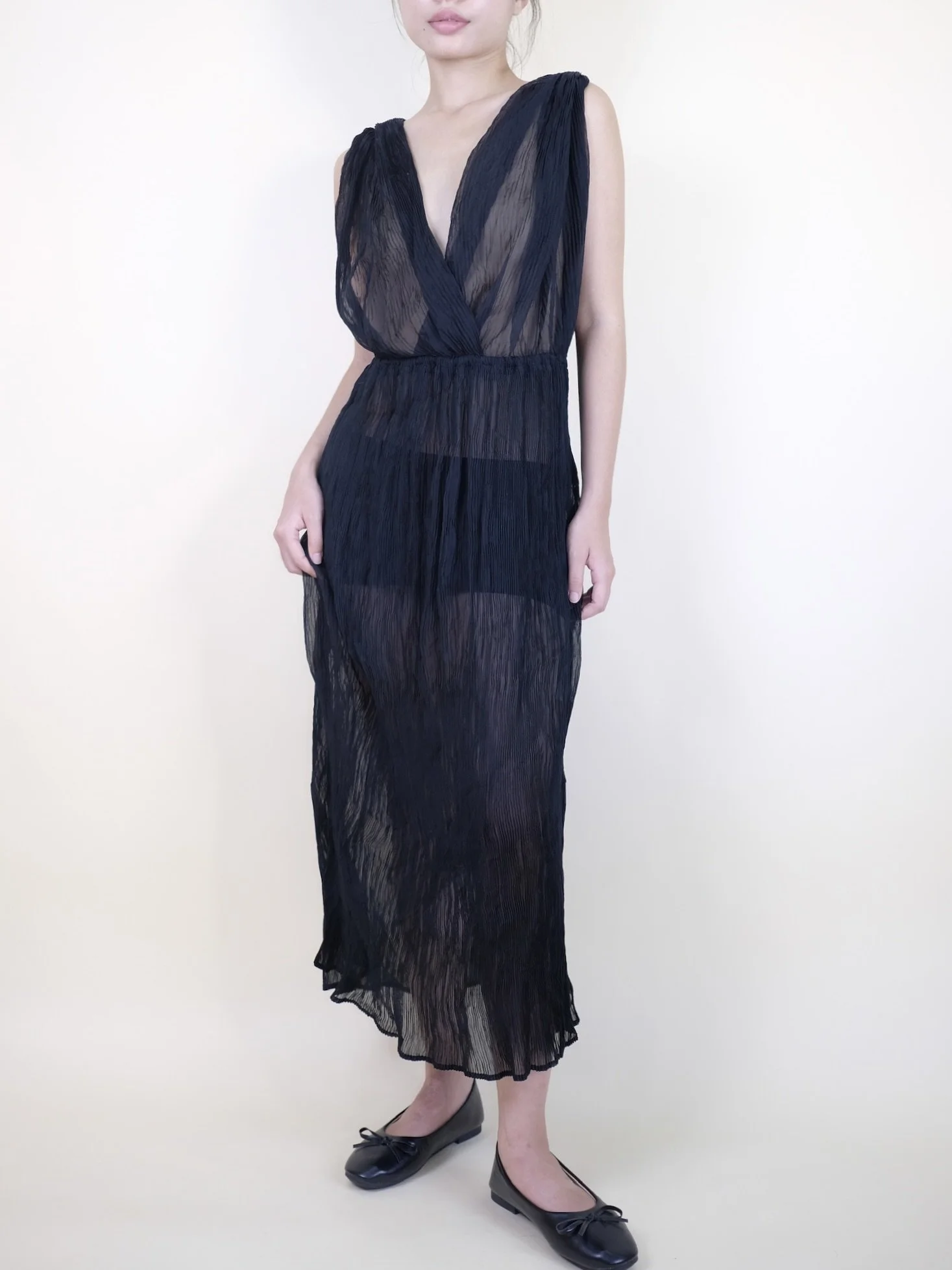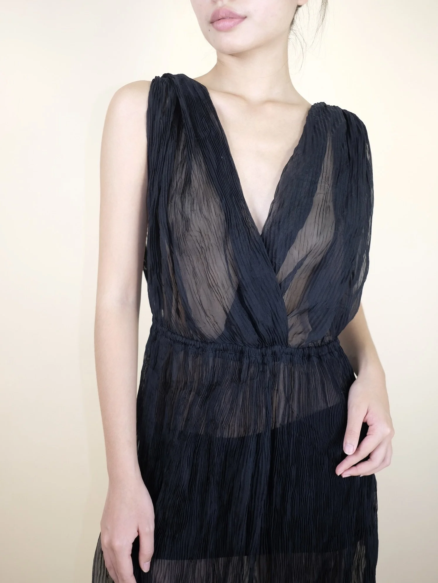 Shop › Black Sheer Pleated Maxi Dress Image 1 of 9 Image 2 of 9 Image 3 of 9 Image 4 of 9 Image 5 of 9 Image 6 of 9 Image 7 of 9 Image 8 of 9 Image 9 of 9 Black Sheer Pleated Maxi Dress €65.00 sold out Color: Black — Deep V-Neck, Sleeveless, Flowing SilhouetteIn very good condition.Fits S/M/L Sold Out Added! Color: Black — Deep V-Neck, Sleeveless, Flowing SilhouetteIn very good condition.Fits S/M/L