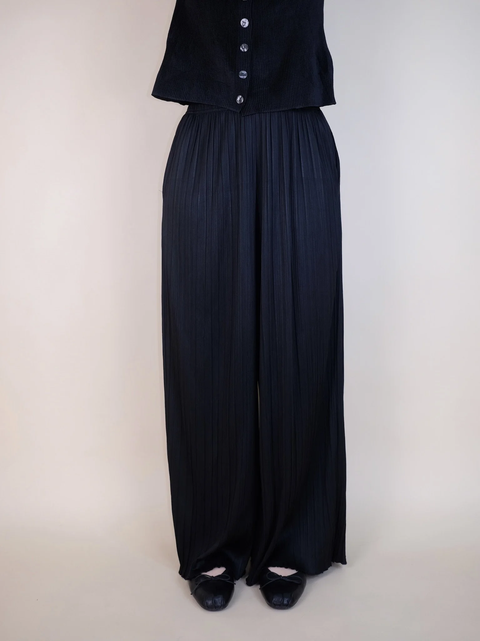 Shop › Black Soft Pleats Wide-Leg Pants Image 1 of 7 Image 2 of 7 Image 3 of 7 Image 4 of 7 Image 5 of 7 Image 6 of 7 Image 7 of 7 Black Soft Pleats Wide-Leg Pants €60.00 sold out Color: BlackFits S/M. Elastic waistband from 66cm-80cmIn very good condition Sold Out Added! Color: BlackFits S/M. Elastic waistband from 66cm-80cmIn very good condition