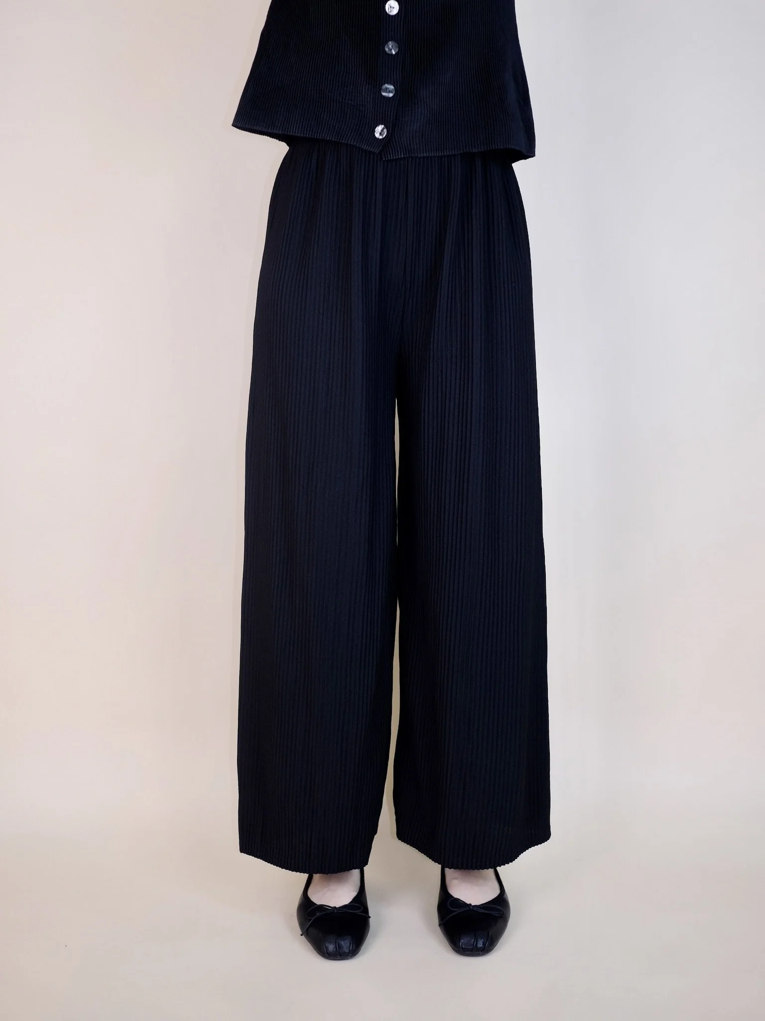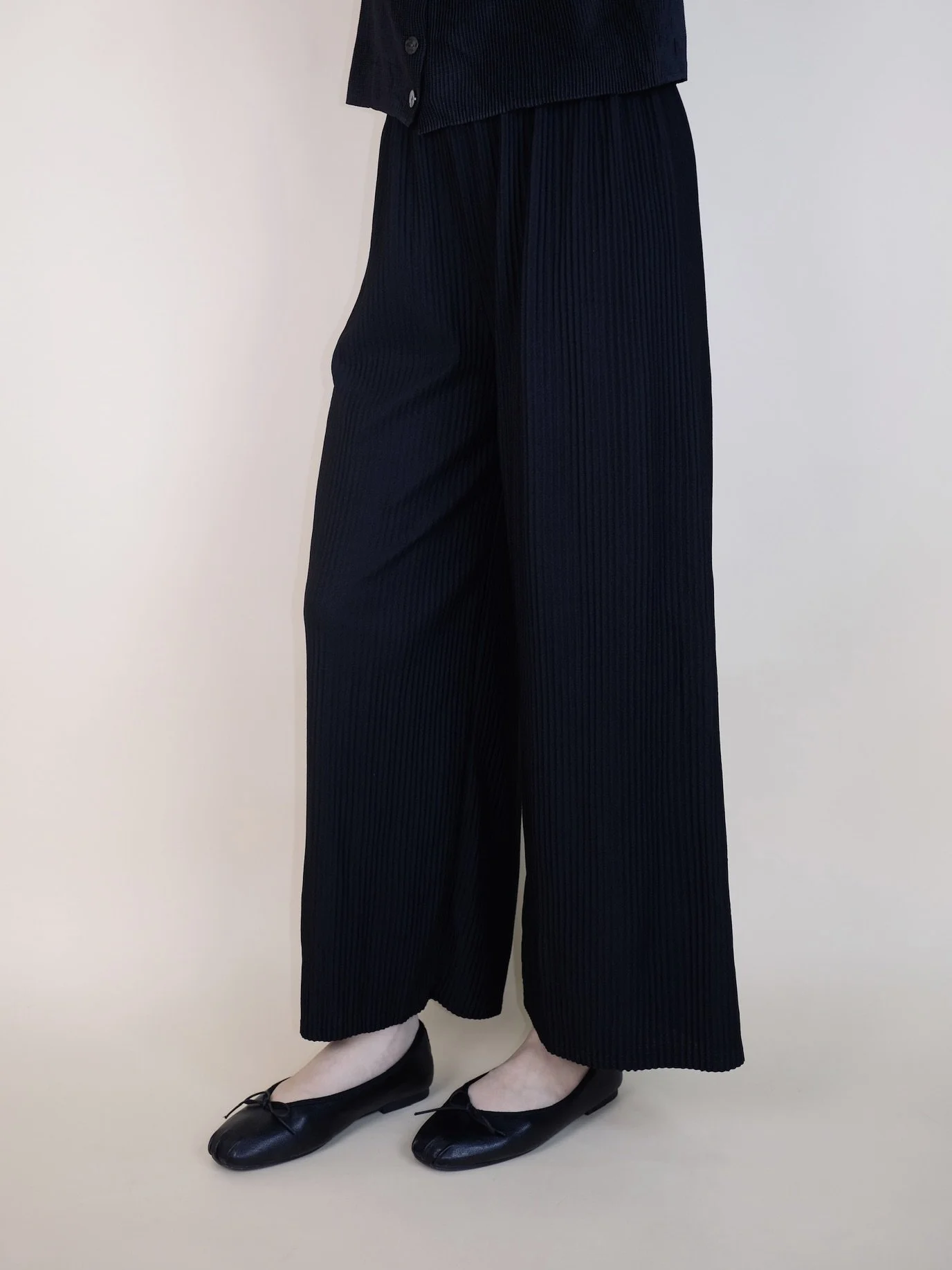 Shop › Black Wide-Leg Soft Pleated Pants Image 1 of 5 Image 2 of 5 Image 3 of 5 Image 4 of 5 Image 5 of 5 Black Wide-Leg Soft Pleated Pants €60.00 sold out Color: BlackIn very good condition.Fits free-size, elastic waistband from 66cm to 80cm Sold Out Added! Color: BlackIn very good condition.Fits free-size, elastic waistband from 66cm to 80cm