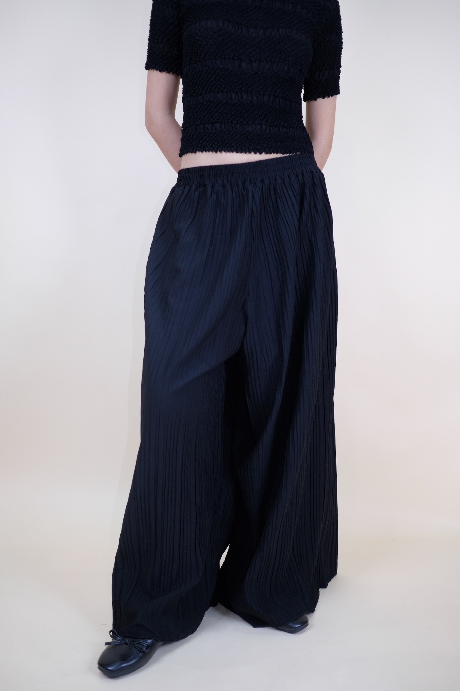 Shop › Black Wide-Leg Pleated Pants Image 1 of 5 Image 2 of 5 Image 3 of 5 Image 4 of 5 Image 5 of 5 Black Wide-Leg Pleated Pants €65.00 sold out Color: BlackIn a very good condition.Fits S/M/ a small L — Total Length: cm / Waistband Elastic: cm Sold Out Added! Color: BlackIn a very good condition.Fits S/M/ a small L — Total Length: cm / Waistband Elastic: cm