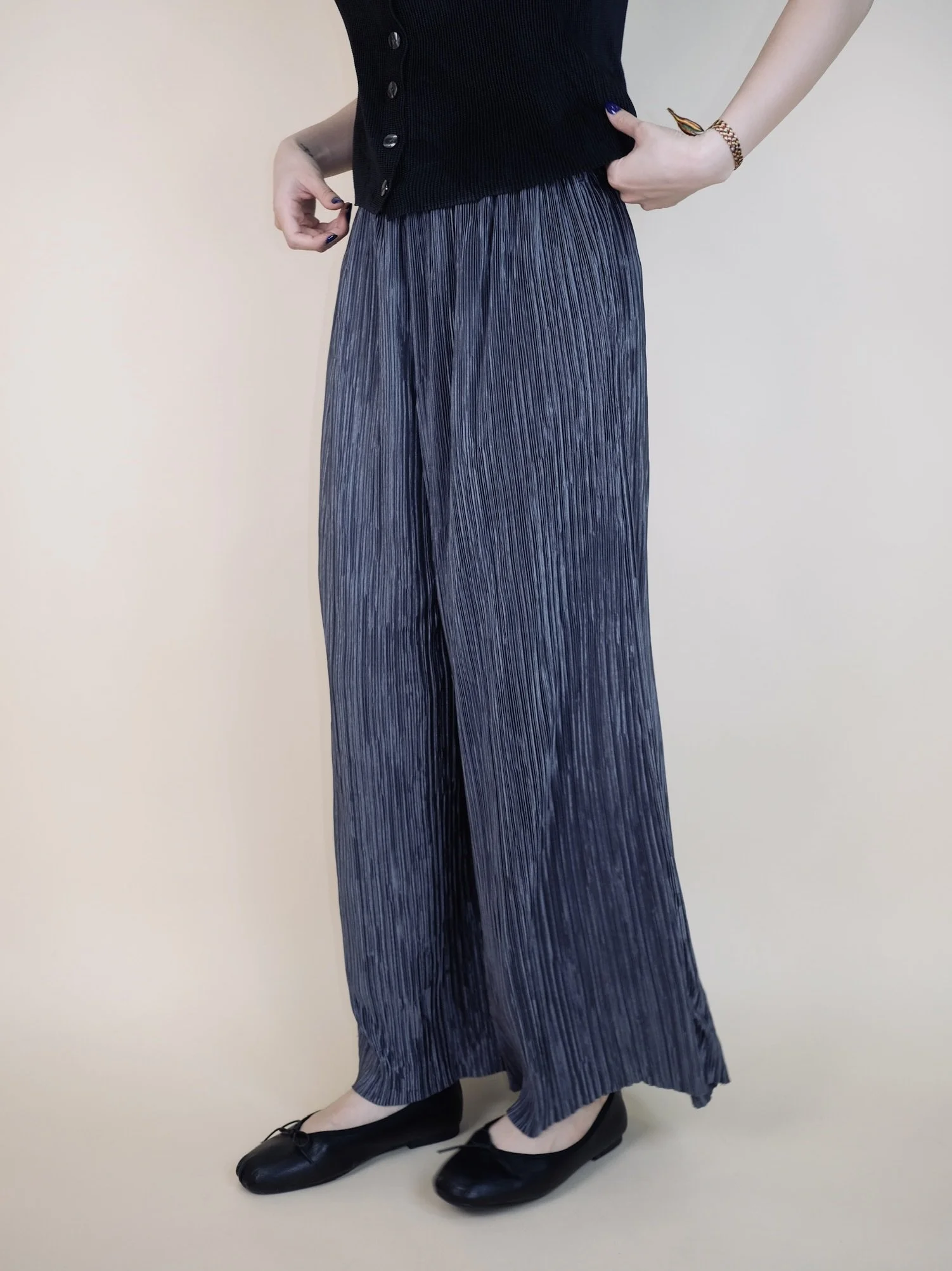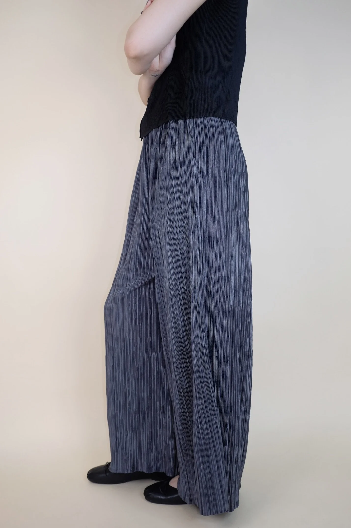 Shop › Dark Grey Wide-Leg Pleated Pants Image 1 of 6 Image 2 of 6 Image 3 of 6 Image 4 of 6 Image 5 of 6 Image 6 of 6 Dark Grey Wide-Leg Pleated Pants €60.00 sold out Color: Dark Grey — Slightly shinnyIn very good condition.Fits: S/M/L — Total Length: cm / Waistband: cm Sold Out Added! Color: Dark Grey — Slightly shinnyIn very good condition.Fits: S/M/L — Total Length: cm / Waistband: cm