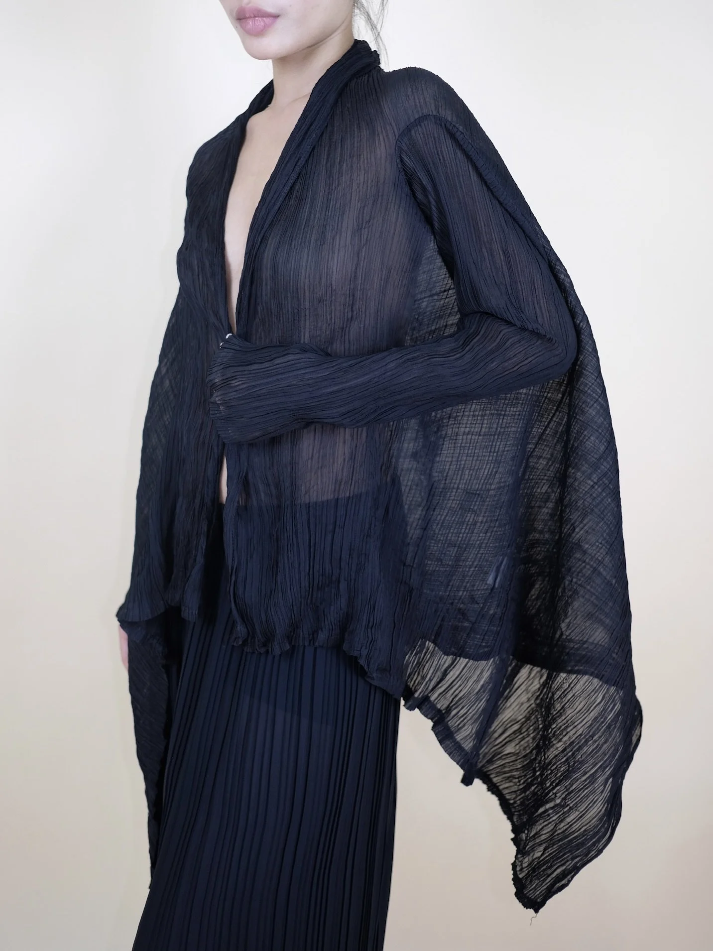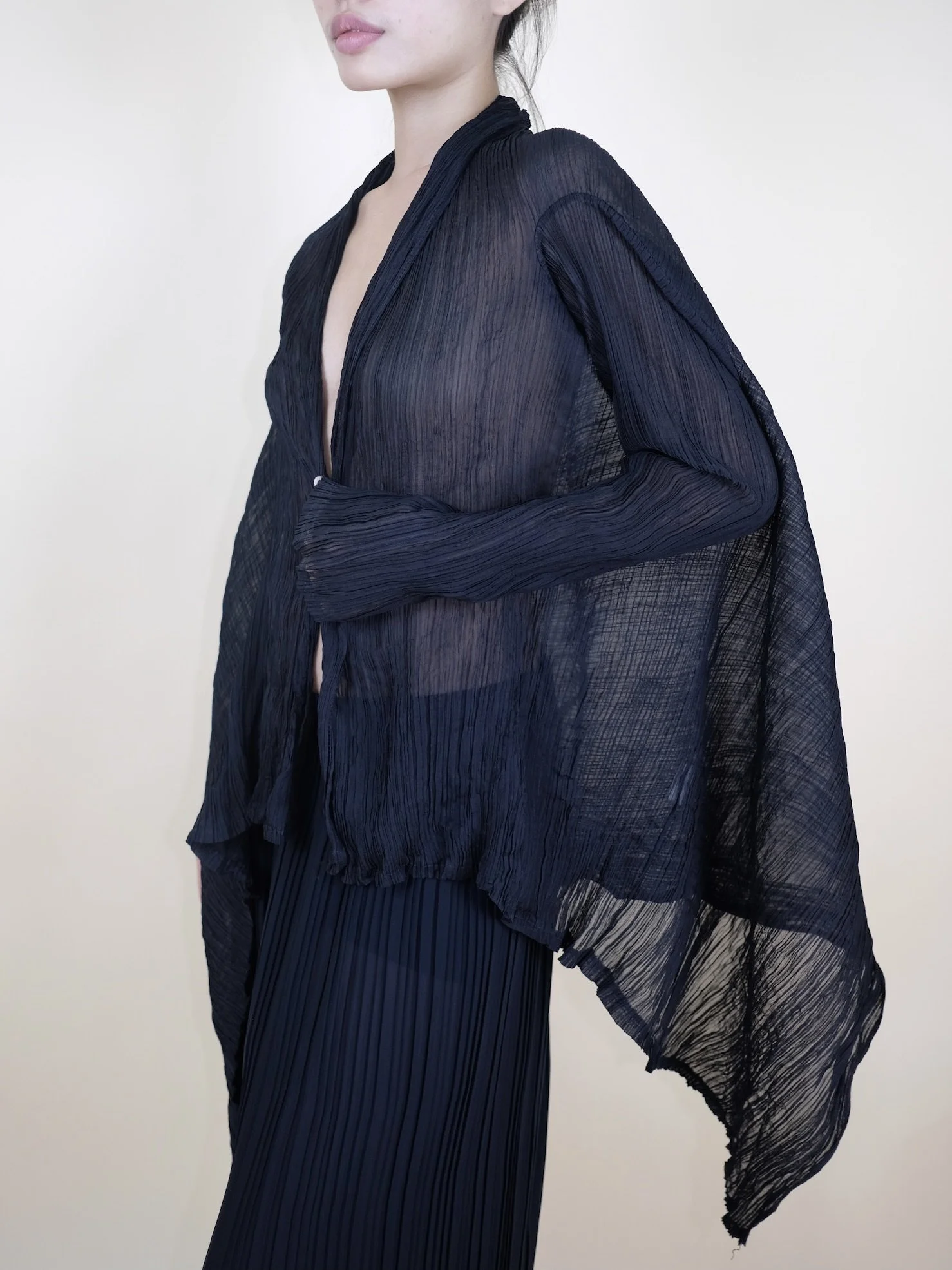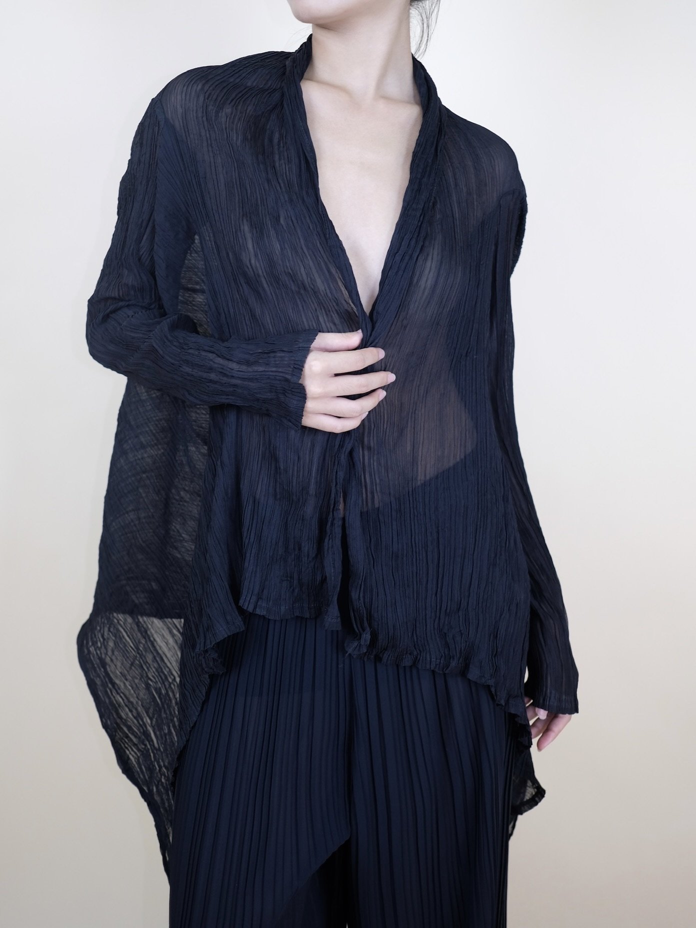 Shop › Lightweight Sheer Pleated Cardigan Image 1 of 7 Image 2 of 7 Image 3 of 7 Image 4 of 7 Image 5 of 7 Image 6 of 7 Image 7 of 7 Lightweight Sheer Pleated Cardigan €65.00 sold out Color: BlackIn very good condition.Fits free size — XS/S/M Sold Out Added! Color: BlackIn very good condition.Fits free size — XS/S/M