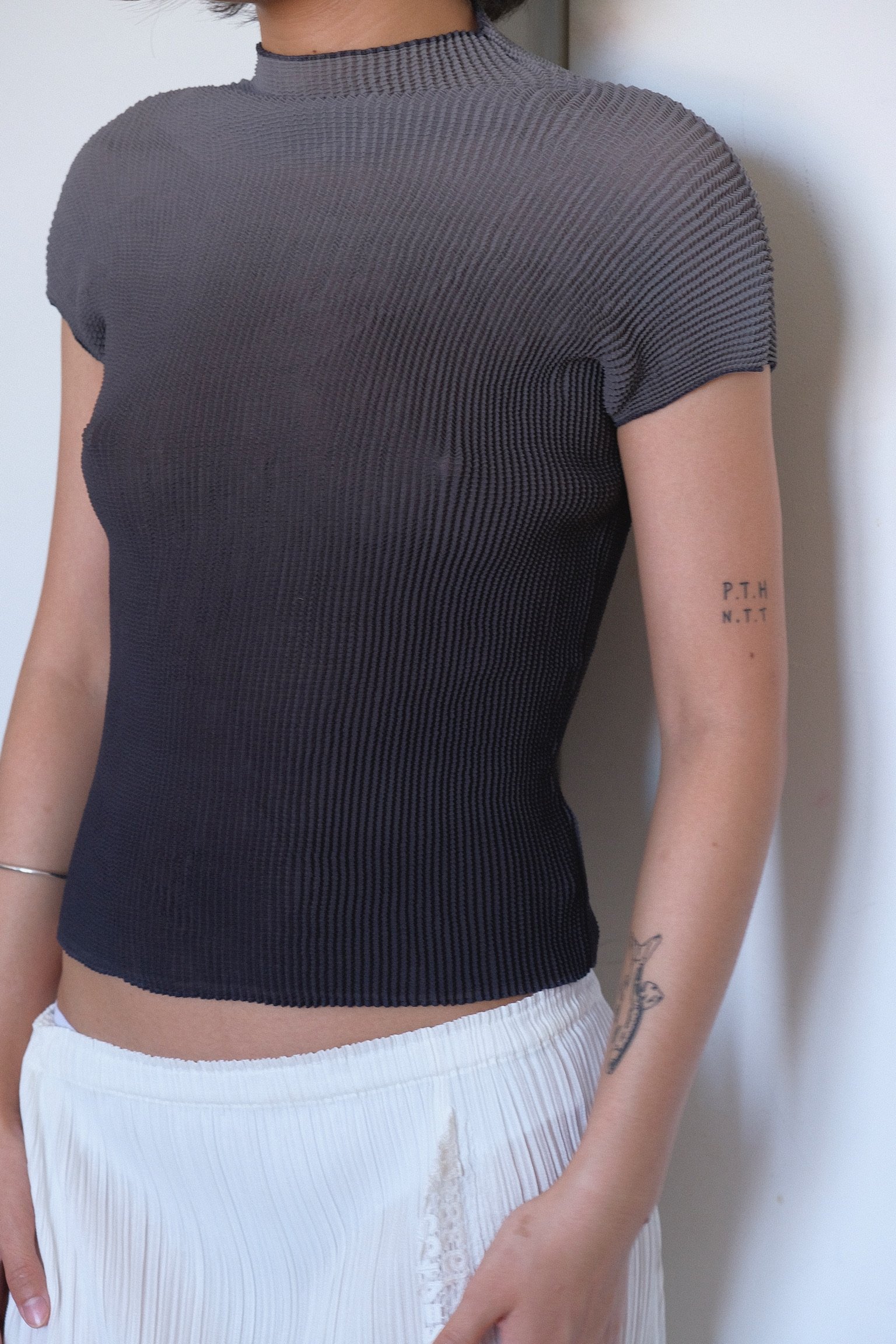 Shop › Ombre Grey Fitted Micro-Pleat High Neck Top Image 1 of 11 Image 2 of 11 Image 3 of 11 Image 4 of 11 Image 5 of 11 Image 6 of 11 Image 7 of 11 Image 8 of 11 Image 9 of 11 Image 10 of 11 Image 11 of 11 Ombre Grey Fitted Micro-Pleat High Neck Top €65.00 sold out Color: Ombre GreyIn very good condition. Made in Japan.Fits XS/S/M Sold Out Added! Color: Ombre GreyIn very good condition. Made in Japan.Fits XS/S/M