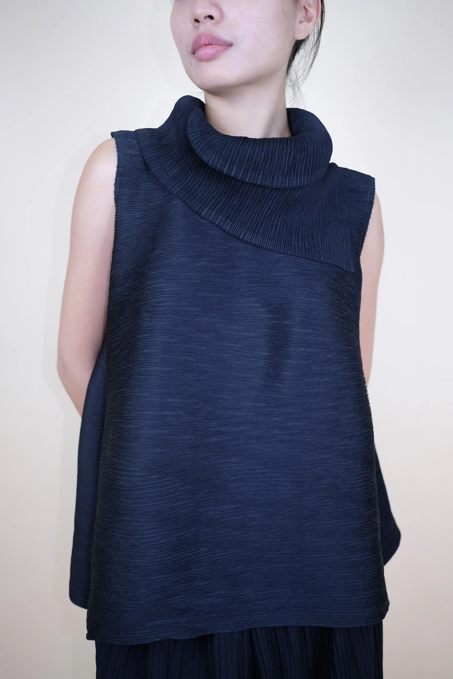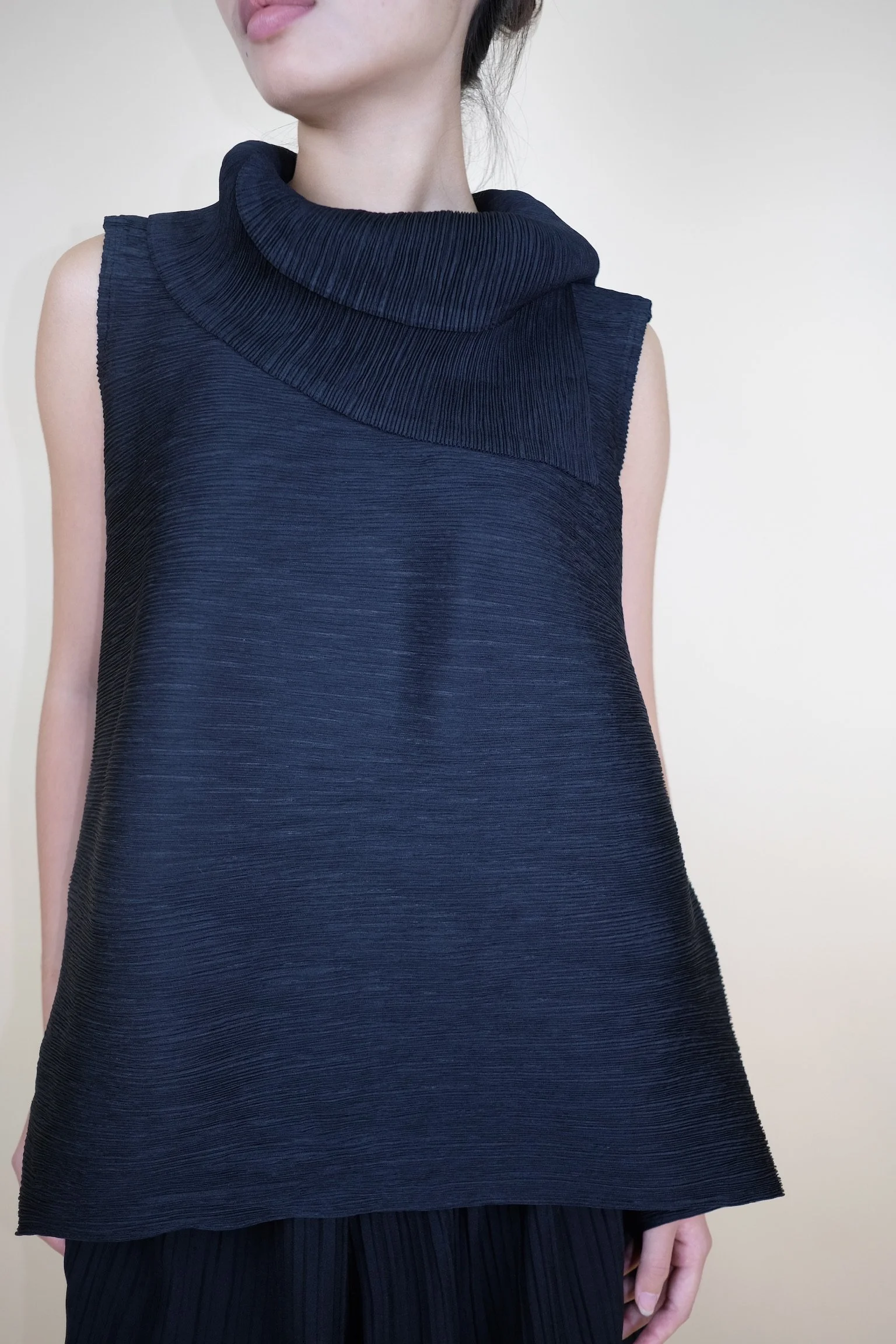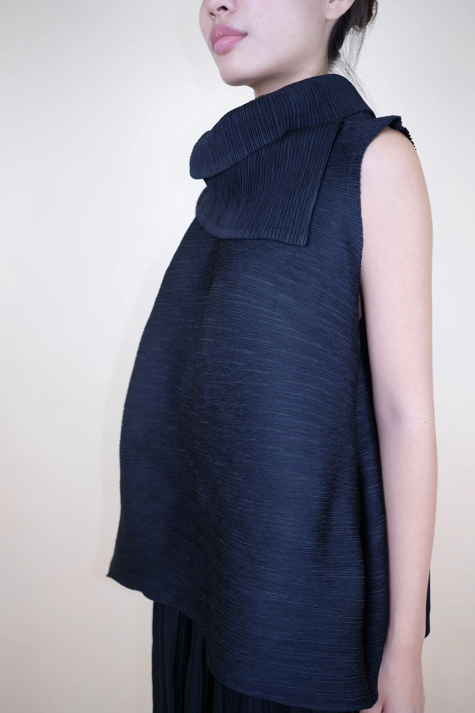 Shop › Pleated Sleeveless Top with Folded Collar Image 1 of 5 Image 2 of 5 Image 3 of 5 Image 4 of 5 Image 5 of 5 Pleated Sleeveless Top with Folded Collar €60.00 sold out Color: Black — Relaxed A-Line SilhouetteIn a very good condition.FIts XS/S/M Sold Out Added! Color: Black — Relaxed A-Line SilhouetteIn a very good condition.FIts XS/S/M