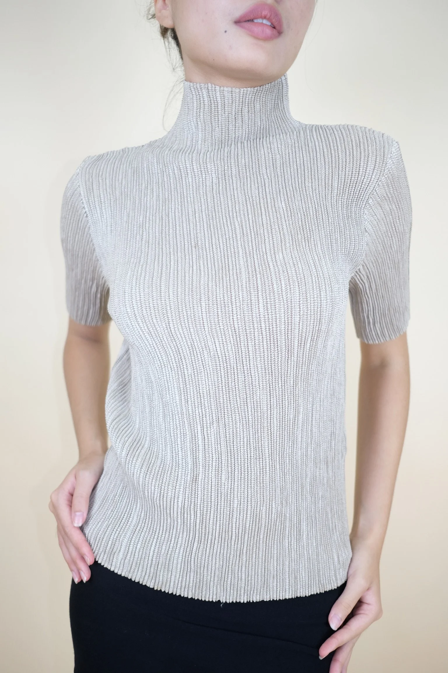 Shop › Specchio Beige Fish Bone Pleats High Neck Top Image 1 of 6 Image 2 of 6 Image 3 of 6 Image 4 of 6 Image 5 of 6 Image 6 of 6 Specchio Beige Fish Bone Pleats High Neck Top €65.00 sold out Color: BeigeIn very good condition. Fits XS/S/M Sold Out Added! Color: BeigeIn very good condition. Fits XS/S/M