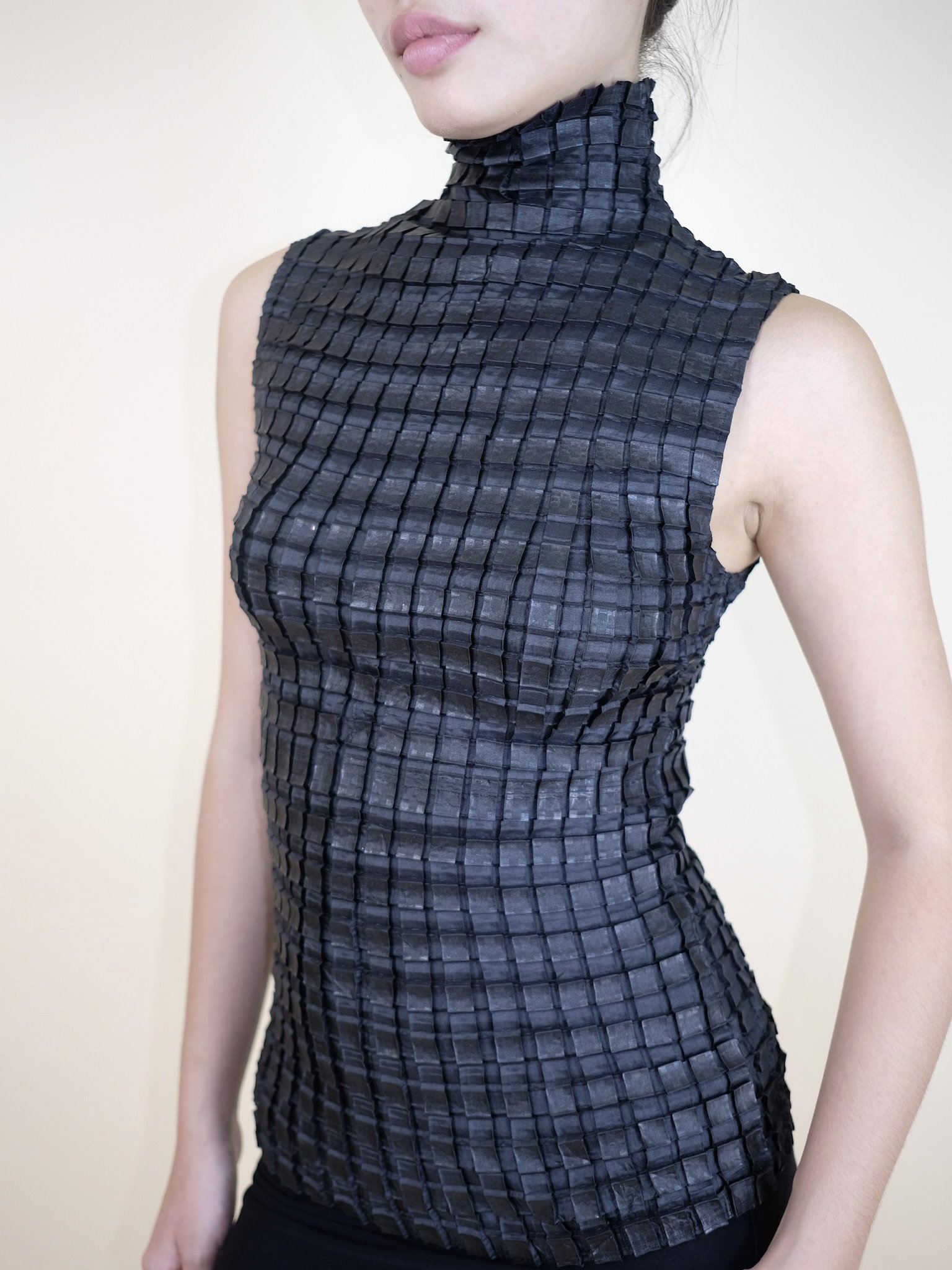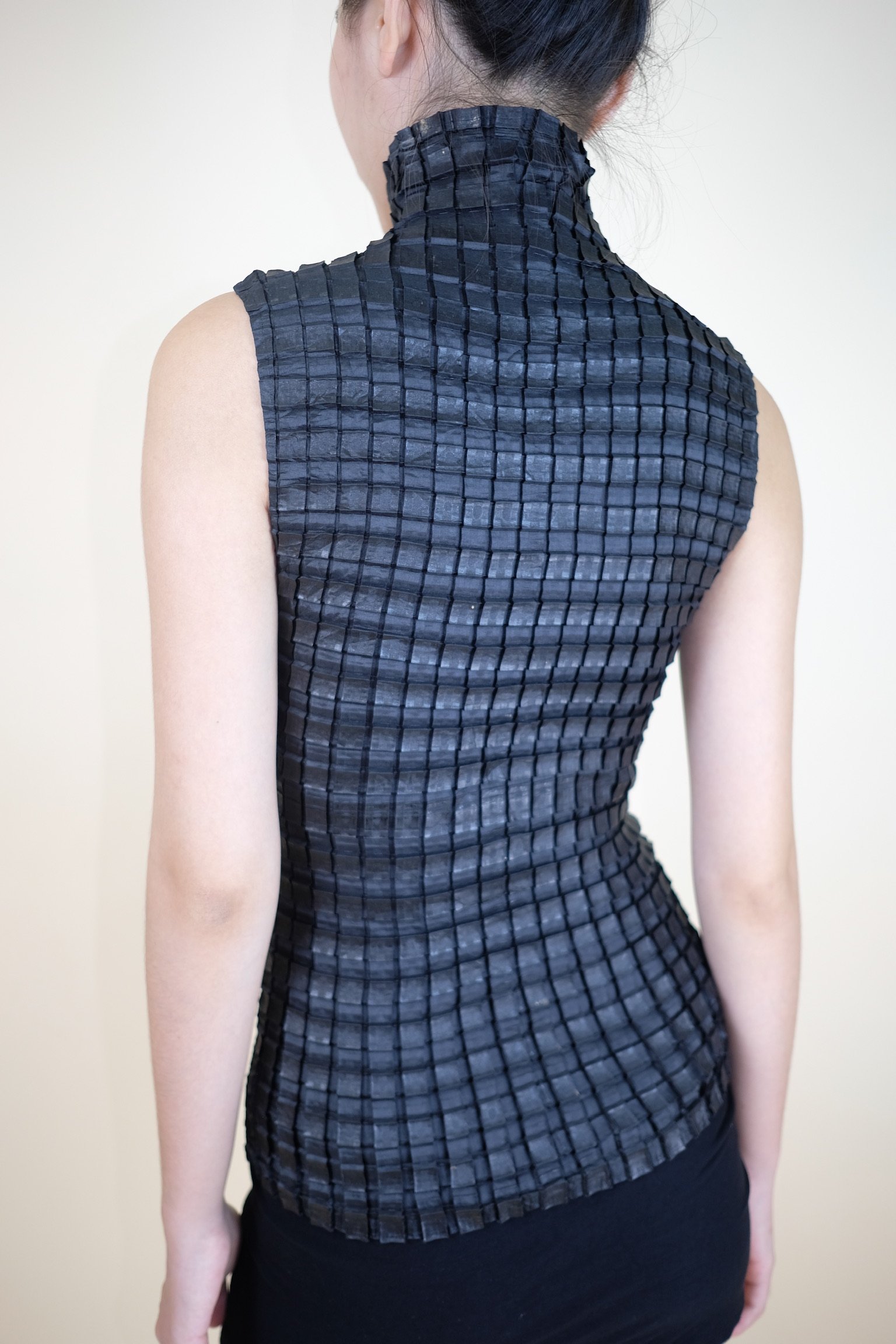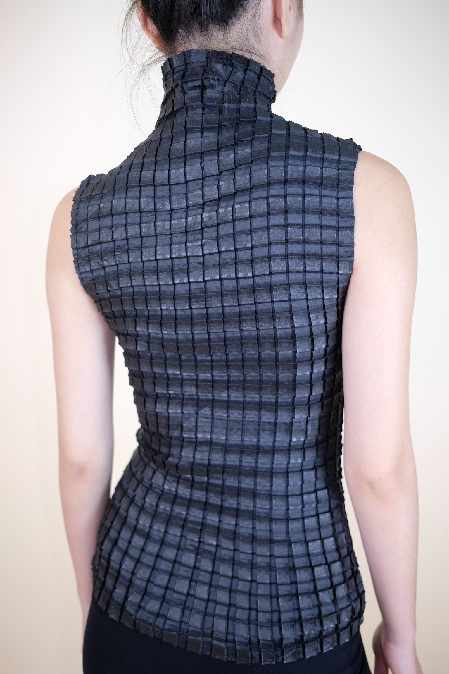 Shop › Structured Square Pleat High Neck Sleeveless Top Image 1 of 8 Image 2 of 8 Image 3 of 8 Image 4 of 8 Image 5 of 8 Image 6 of 8 Image 7 of 8 Image 8 of 8 Structured Square Pleat High Neck Sleeveless Top €65.00 sold out Color: BlackIn very good condition.Fits XS/S/a small M — Can be worn backward Sold Out Added! Color: BlackIn very good condition.Fits XS/S/a small M — Can be worn backward