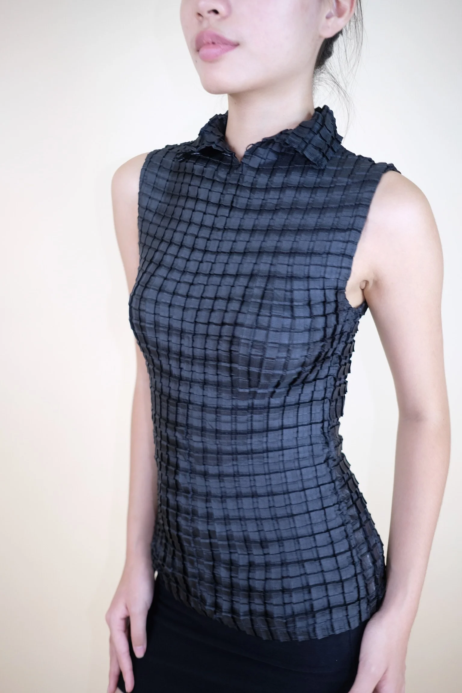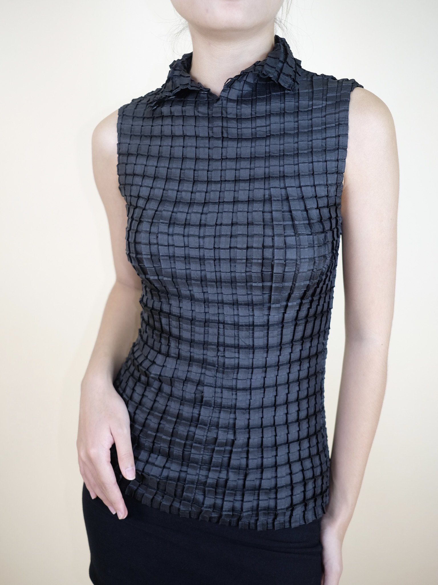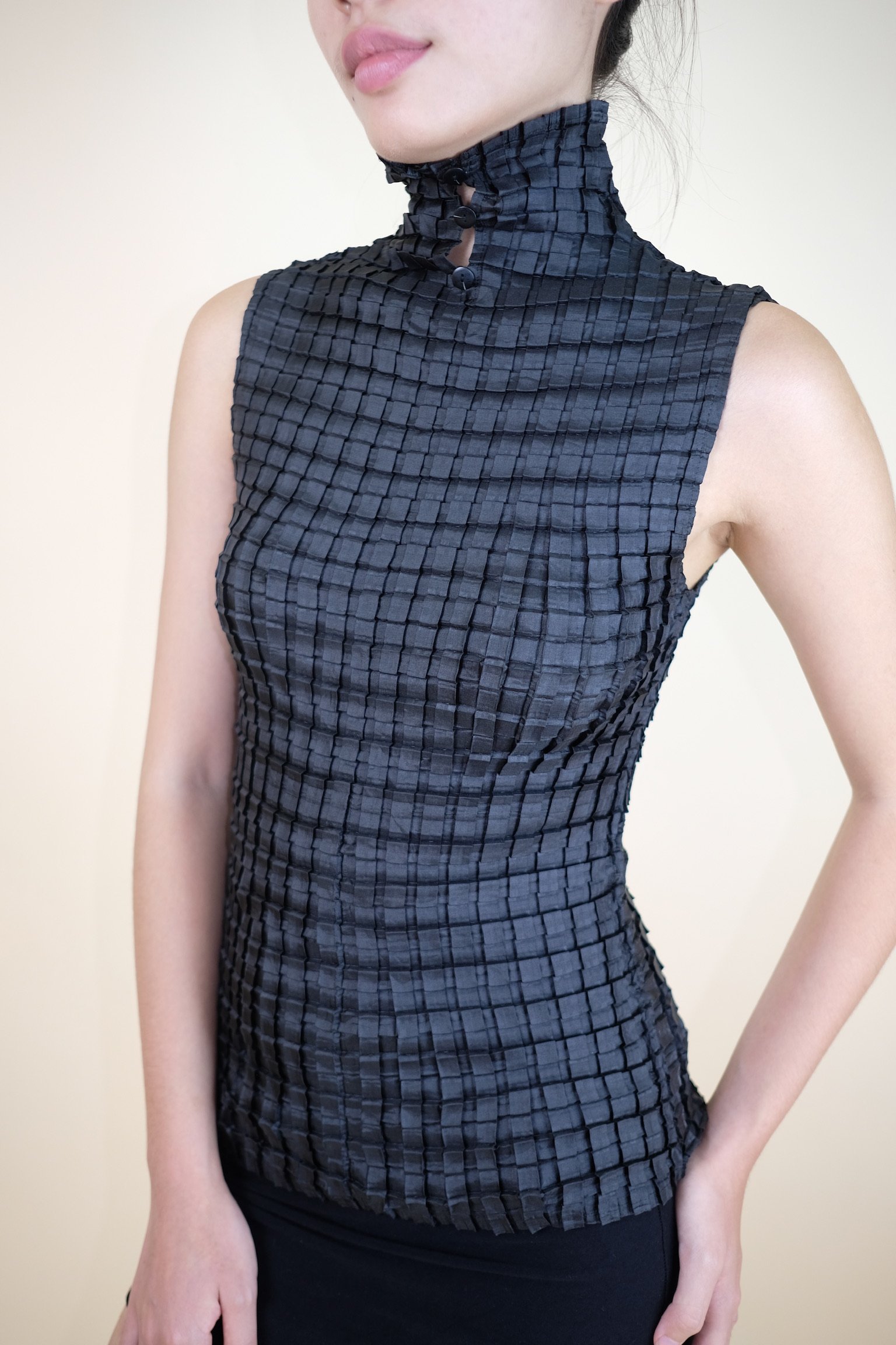 Shop › Structured Square Pleat High Neck Sleeveless Top Image 1 of 8 Image 2 of 8 Image 3 of 8 Image 4 of 8 Image 5 of 8 Image 6 of 8 Image 7 of 8 Image 8 of 8 Structured Square Pleat High Neck Sleeveless Top €65.00 sold out Color: BlackIn very good condition.Fits XS/S/a small M — Can be worn backward Sold Out Added! Color: BlackIn very good condition.Fits XS/S/a small M — Can be worn backward
